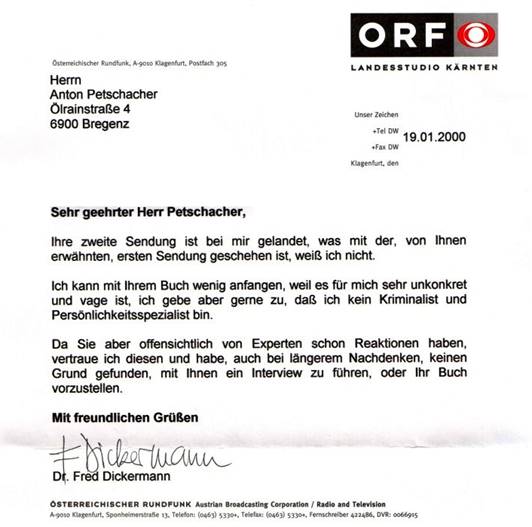 und jenes von „Österreichs Briefbomber“ als zu vage für ein erbetenes Interview