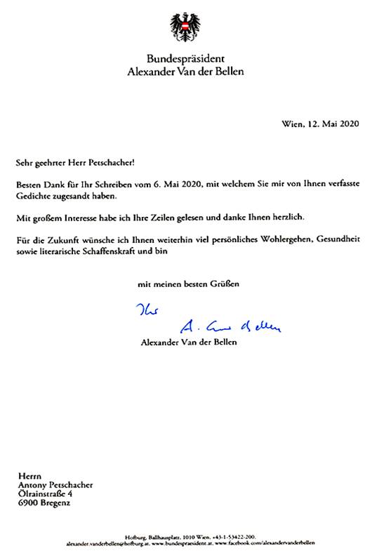 Alexander Van der Bellen erreichte Antwort auf ein an
